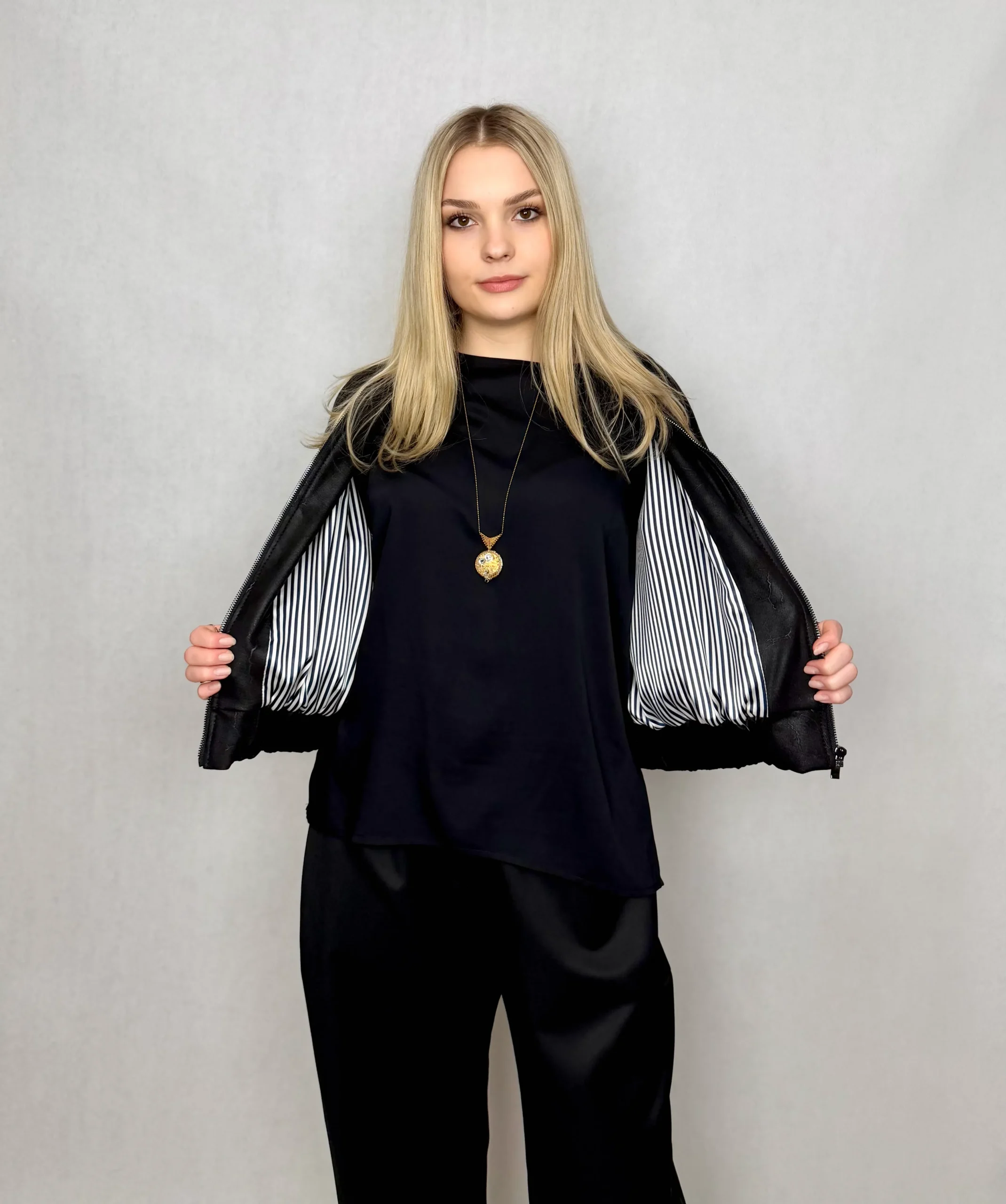 Poznaj naszą kultową kurteczkę typu „bamberka” w nowym, eleganckim kolorze. Ten model to idealna równowaga między miejskim stylem a luksusowym wykończeniem. Rewolucja tkwi nie tylko w fasonie, ale przede wszystkim w materiałach.